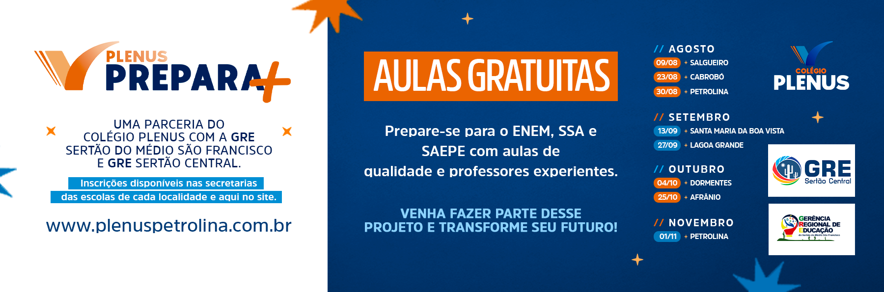 Atualmente, o curso é oferecido no prédio do Colégio Plenus, localizado na Cidade Universitária. Essa mudança proporciona mais do que comodidade, proporciona também acolhimento, pois os alunos do Ensino Médio permanecem no ambiente familiar do colégio, o que garante continuidade, e segurança na transição do 3º ano para o Pré-Vestibular.